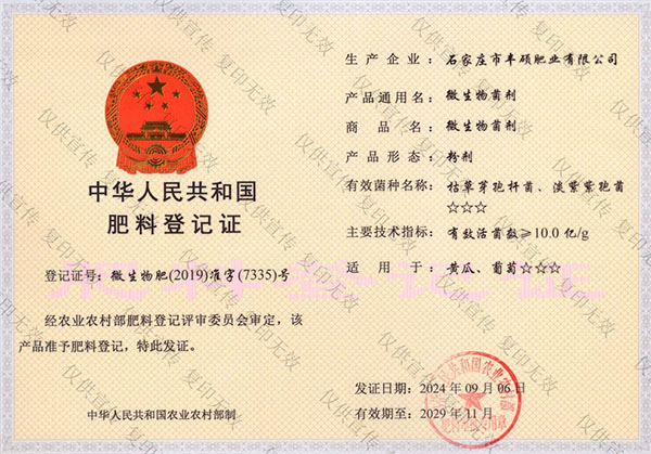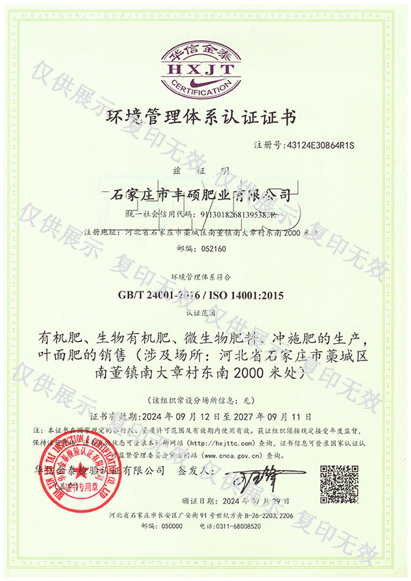 石家莊市豐碩肥業(yè)有限公司是一家集新型肥料的研發(fā)、制造、營銷、服務(wù)于一體的高新技術(shù)企業(yè),公司自2008年創(chuàng)辦以來,一直致力于新型肥料的技術(shù)研發(fā)和市場推廣。公司組建了豐碩新型肥料研究中心(院士專家企業(yè)工作站),自主知識產(chǎn)權(quán)研發(fā)團(tuán)隊(duì)專業(yè)科研人員20余人,獲得了多項(xiàng)肥料國家發(fā)明專利。公司目前已擁有發(fā)酵類有機(jī)肥、微生物菌劑、生物有機(jī)肥、土壤調(diào)理劑、大量元素水溶肥、含腐植酸肥料、含氨基酸肥料、中微量元素肥料等8大品類,“金維克”、“豐碩沃農(nóng)”等2大自有品牌,擁有20多個(gè)暢銷品種。目前,我公司已經(jīng)通過了“ISO9001 質(zhì)量管理體系認(rèn)證”、“ISO14001 環(huán)境管理體系認(rèn)證”、“OHSAS18001 職業(yè)健康管理體系認(rèn)證”。...